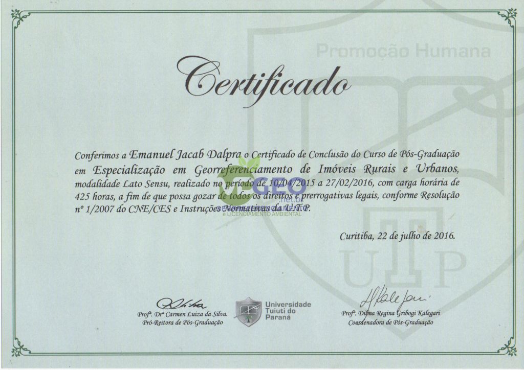 Pós Graduado com Esp. Georreferenciamento de Imóveis Rurais e Urbanos